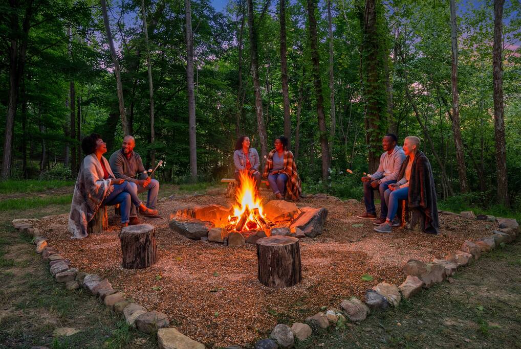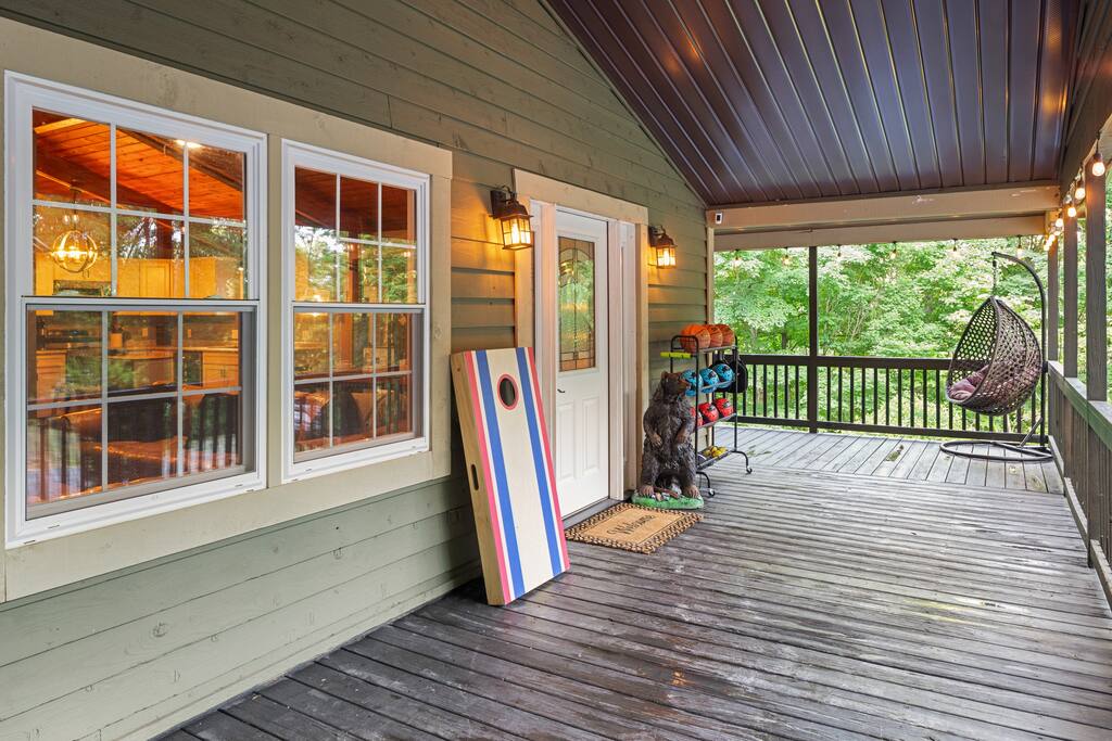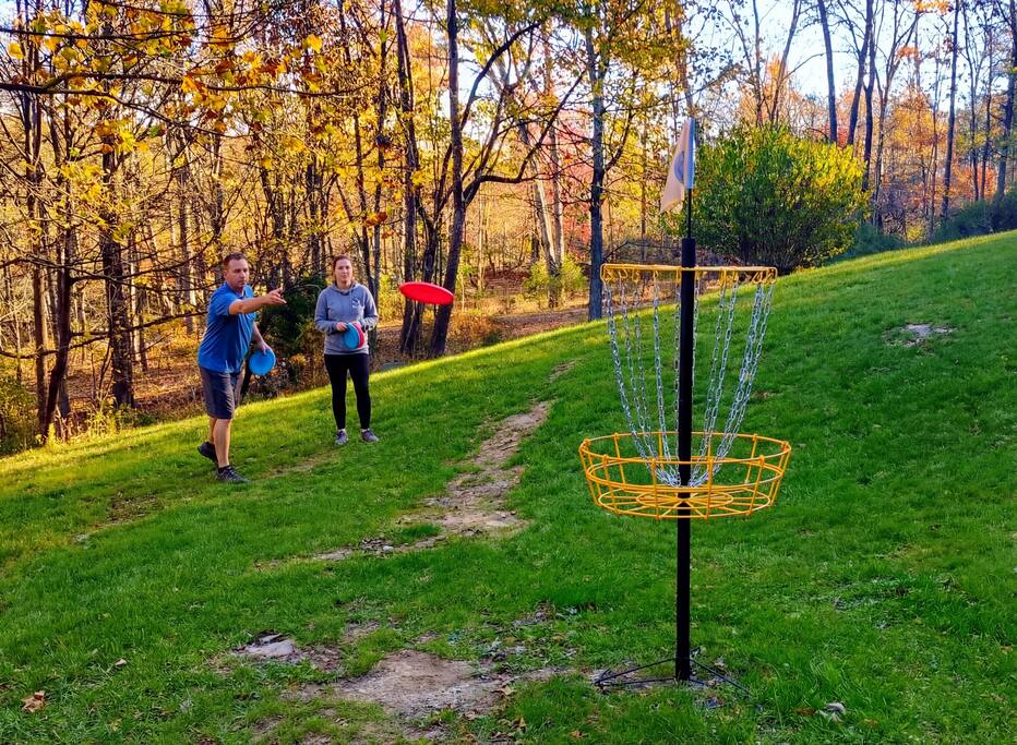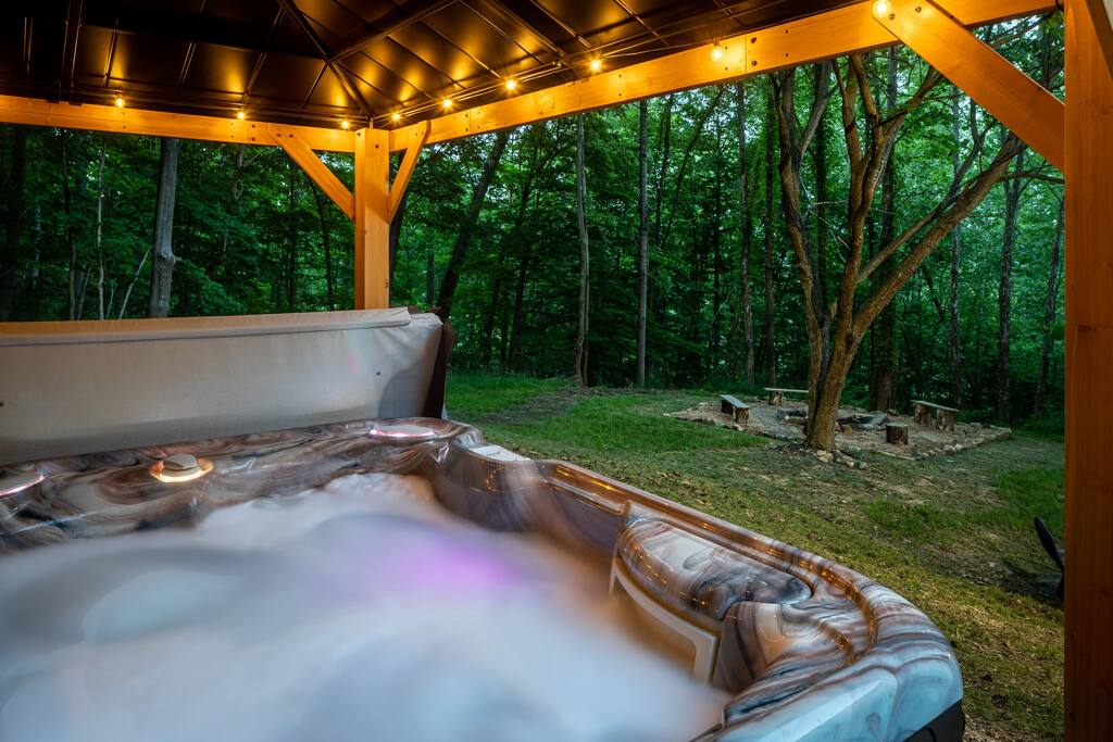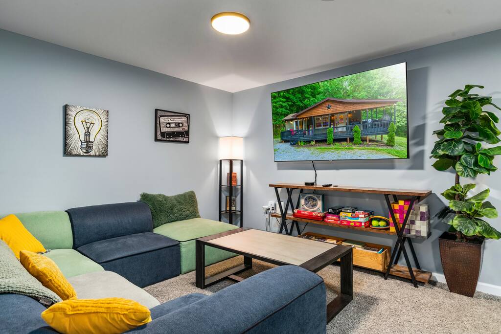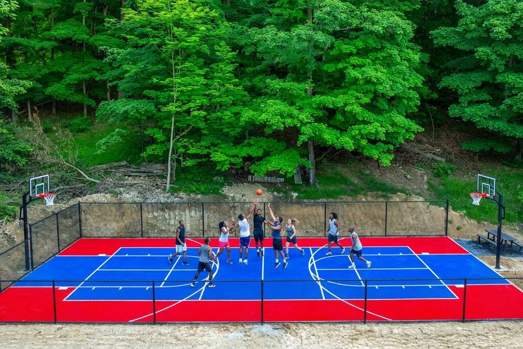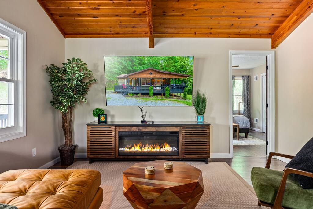BearWood cabin • Direct trail access to Cacapon State Park • 5 private wooded acres, no quiet hours • Game room: pool table, air hockey, arcade games & board collection • Full sports complex: pickleball, basketball, volleyball • 6-person hot tub perfect for stargazing • Oversized fire pit, professional grill & group seating areas • Private 6-hole disc golf course maintained on-property • Pet-friendly retreat • Dual 75" smart TVs, cozy fireplace & high-speed WiFi