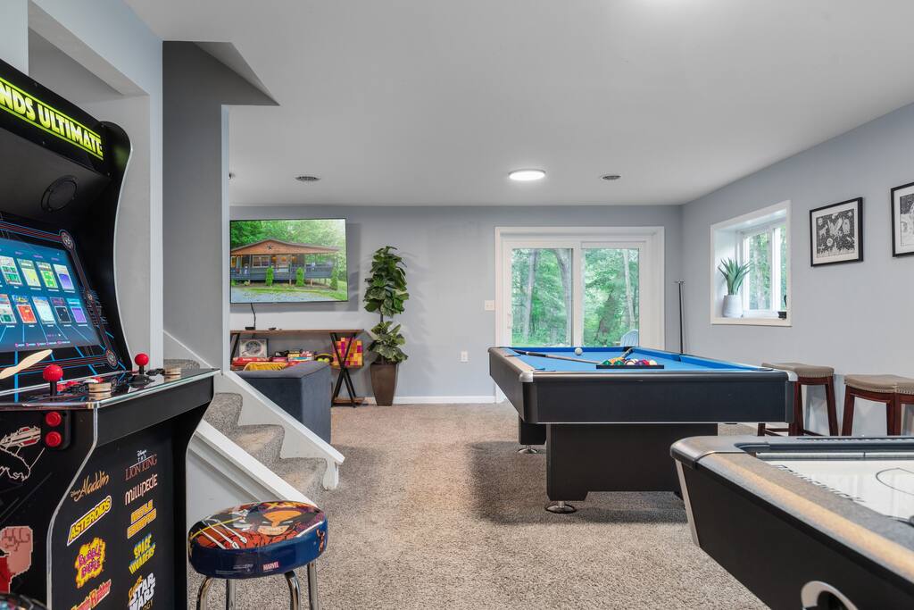 ----------------------------- Bearwood Cabin ----------------------------- Your private playground + mountain retreat in Berkeley Springs, WV Imagine waking up surrounded by forest, stepping out to your own pickleball court, and ending the night soaking under the stars in a 6-person hot tub. At Bearwood Cabin, adventure and relaxation meet on 5 private acres—with no quiet hours, you can truly let go and make memories with your favorite people. ----------------------------- Guest Love ----------------------------- ★★★★★ "Absolutely gorgeous—quiet, spacious, and beautifully decorated." – Jenny ★★★★★ "Worth every dollar! Family-friendly and has everything you could ask for." – Rachel ----------------------------- 🏀 Outdoor Playground ----------------------------- • Private pickleball & basketball court—play anytime, no wait • Volleyball & soccer areas for family tournaments • 6-hole disc golf course right on the property • Oversized fire pit + porch fire pit for s'mores and stargazing • 6-person hot tub under the stars for nightly relaxation ----------------------------- 🎮 Indoor Entertainment ----------------------------- • Game room with pool table, air hockey, arcades & board game collection • Cozy electric fireplace for quiet evenings • Two 75" smart TVs with AppleTV for movie nights • Fast WiFi + dedicated workspace for remote work ----------------------------- 🛏️ Comfortable Accommodations ----------------------------- • 3 king bedrooms with quality mattresses • 1 bunk room with full-over-full bunks + trundle • 2 full bathrooms • Sleeps up to 10 guests comfortably ----------------------------- 🍽️ Full Kitchen & Dining ----------------------------- • Fully equipped kitchen with electric stove, cookware & dinnerware • Large dining table seats 10 for group meals ----------------------------- 🌄 Discover Berkeley Springs ----------------------------- America's first spa town offers mineral soaks, massage therapy, and historic charm. This Top 10 historic town provides hiking, biking, horseback riding, kayaking, fishing, plus local breweries and wineries. Easy Day Trips: Whitetail Resort skiing (26 miles), Harpers Ferry, Shenandoah National Parks, Antietam Battlefield, and Luray Caverns. ----------------------------- 🚗 Practical Details ----------------------------- • Parking for up to 8 vehicles • Pet-friendly (fee applies) • On-demand hot water system • Exterior security cameras for safety (no indoor cameras) ----------------------------- Why Choose Bearwood Cabin ----------------------------- From pickleball tournaments to starlit hot tub soaks, this one-of-a-kind escape offers the space, privacy, and amenities to create lasting memories. Whether you're seeking active adventures or peaceful relaxation, your group will have everything needed for an exceptional mountain retreat. Book your stay at Bearwood Cabin today—your private adventure awaits in Berkeley Springs! ------------------------------ 🎥 Recently featured in a YouTube cabin tour supporting St. Jude—see Bearwood Cabin in action