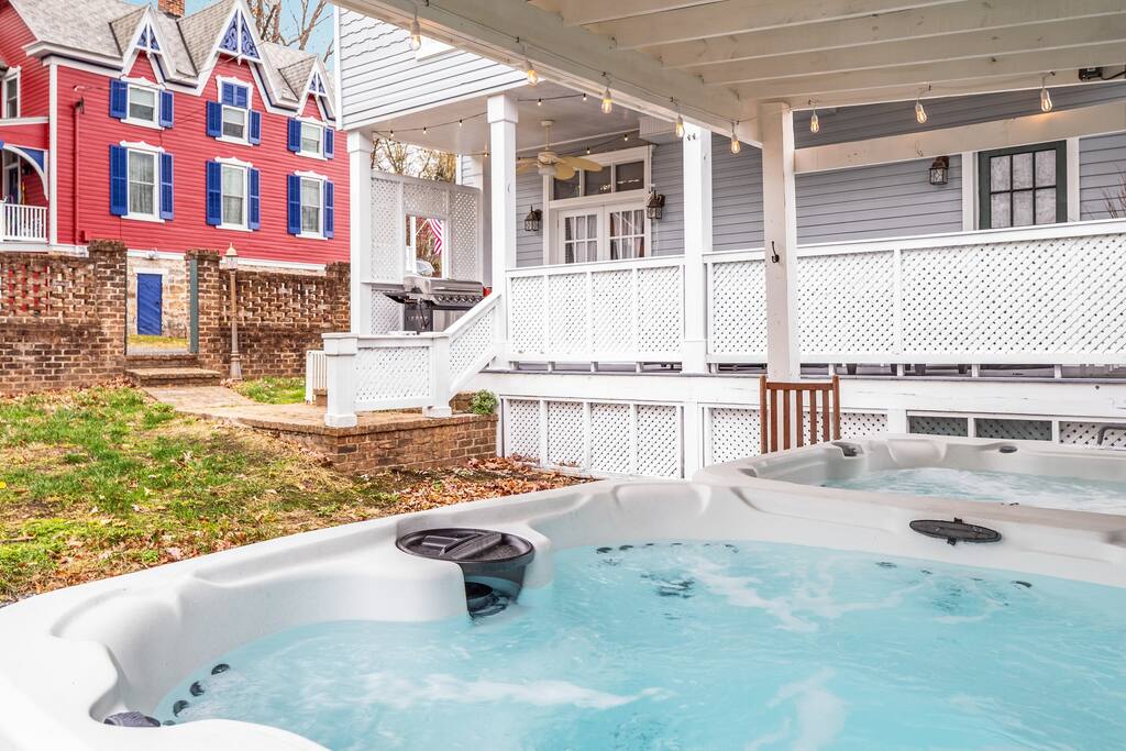 🏛️ Historic Berkeley Springs Estate with Hidden Speakeasy Sleeps 12 • Twin Hot Tubs • Secret Bar • Game Room • Walk to Everything ----------------------------------------- 🥃 Find the Secret Door... ----------------------------------------- Behind it lies a 1920s speakeasy with poker table, full bar, and vintage records. Guests call it "the coolest feature ever" and spend hours here mixing cocktails and making memories. ----------------------------------------- 🛁 Soak Together in Twin Hot Tubs ----------------------------------------- Most Airbnbs have one hot tub. We have two side-by-side so your entire group (up to 14!) can relax together under the stars. Game-changer for large groups. ----------------------------------------- 🏠 Built for Big Groups ----------------------------------------- 4 master suites with private bathrooms + dedicated kids' floor with bunks. 7 total bathrooms means no bathroom drama. Ever. ----------------------------------------- 🚶♂️ Downtown Berkeley Springs at Your Doorstep ----------------------------------------- 90 seconds to the historic Roman baths. Walk to farm-to-table restaurants, craft breweries, art galleries, and the famous mineral springs George Washington visited. ----------------------------------------- 🎯 The Complete Package ----------------------------------------- Private cedar sauna • Epic game room • Fire pit & BBQ • Gourmet kitchen • Free parking ⚡ 50+ Five-Star Reviews - Guests say "best Airbnb experience ever" and "will definitely return." Only 3 weekends available this fall.