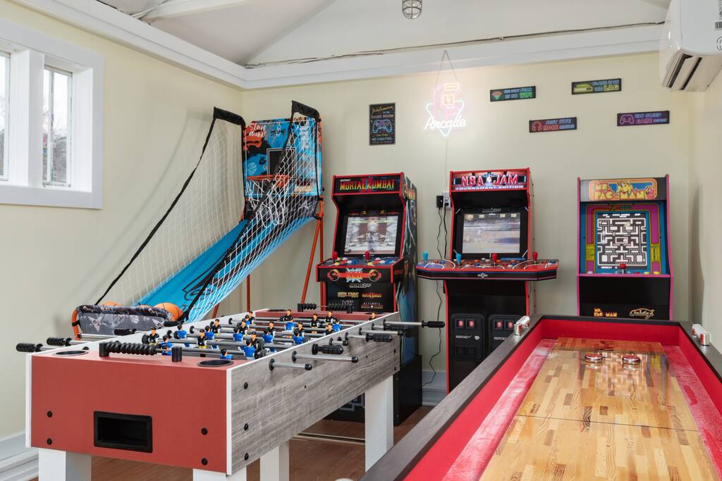 • Hidden speakeasy with poker table & bar behind secret door • Twin hot tubs for ultimate group relaxation • Private cedar sauna & epic game room • 4 master suites + kids' floor with bunk beds (sleeps 12) • 7 bathrooms - no waiting in line! • Historic 1920s charm meets modern luxury • Heart of downtown - walk to springs, restaurants & shops • Fire pit, BBQ & private backyard for gatherings